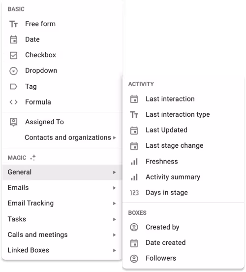 Magic columns automatically fill in metadata from emails and activity in your pipelines. Metadata includes things like timestamps of the last call, meeting, or email.
