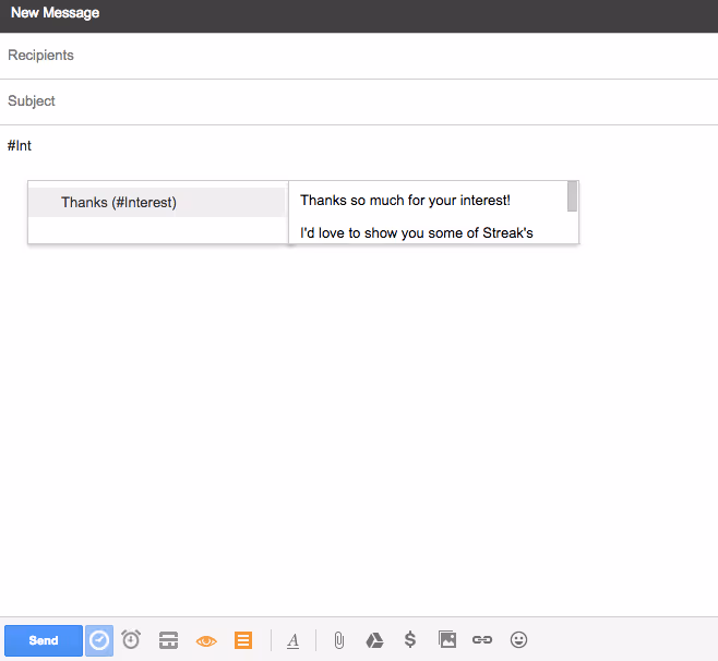Chances are time saving snippets can also help others on your team. Snippets are shareable between all Streak collaborators.