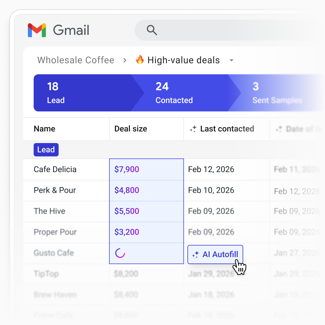 AI-powered CRM data enrichment reads unstructured information (emails, notes, public company data), extracts specific data points, and writes them into defined CRM fields like dates, numbers, or dropdowns. In Streak, this is handled through AI Autofill, which maps AI output directly into structured fields.
