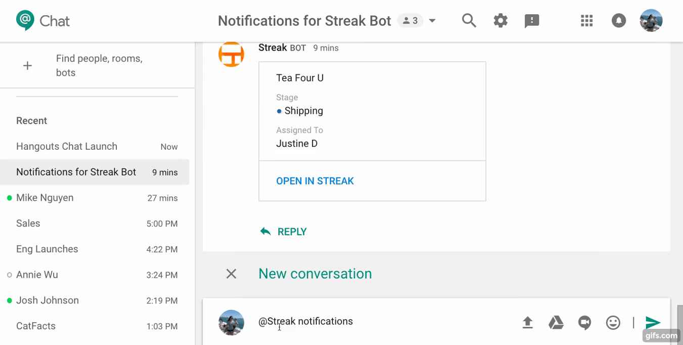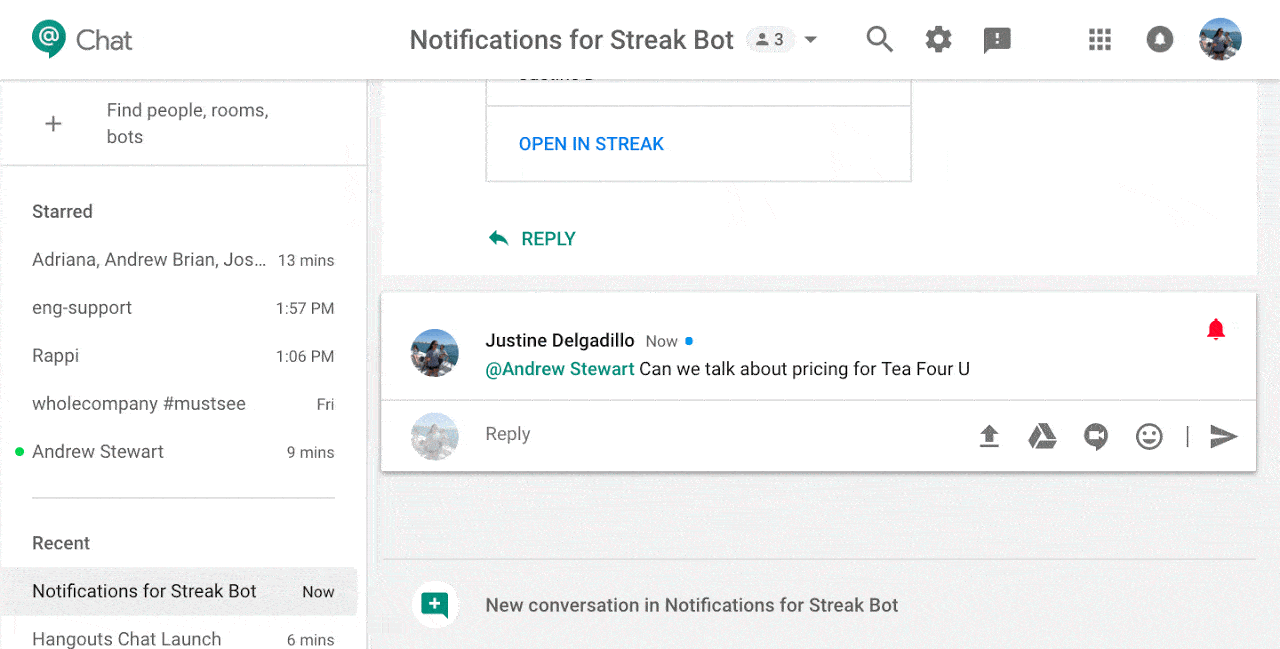 Introducing the @Streak bot for Google Hangouts Chat
