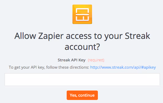 For any and all Zaps, you’ll need to begin by finding your Streak API key (a way for us to connect you to other services securely):