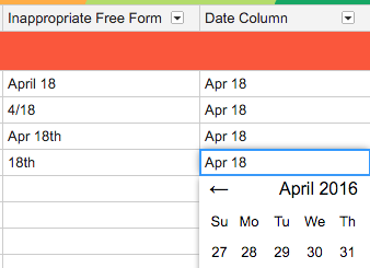 In the above, we can’t sort or report on that kind of mixed data. On the other hand, using the dedicated Date column gives us clean data (ready to sort, filter, or report):