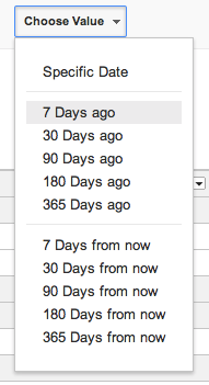 And I want that to limit the filter to boxes where the last time I exchanged an email was more than 7 days ago. So that’s what I’m going to choose for the value: