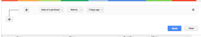 There are many fields I can filter on including the custom columns I’ve added, or one of the many built-in fields that Streak provides for me. In this case I’m going to filter on “Date of Last Email”.