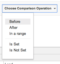 Next I’ll choose the Comparison operation. In this case it’s going to be “Before”