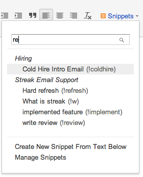 Streak users love their snippets! They are great way to help semi-automate your email responses and a great time saver. However, some of our power users started getting dozens, even hundreds of snippets.